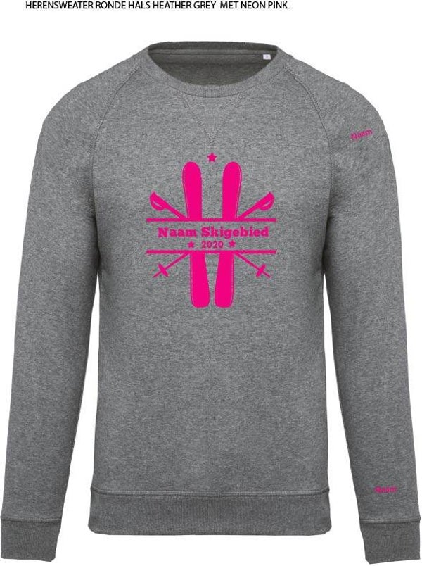 Grey heather met neon pink / Large / opdruk naam onder (boven mouwboord)