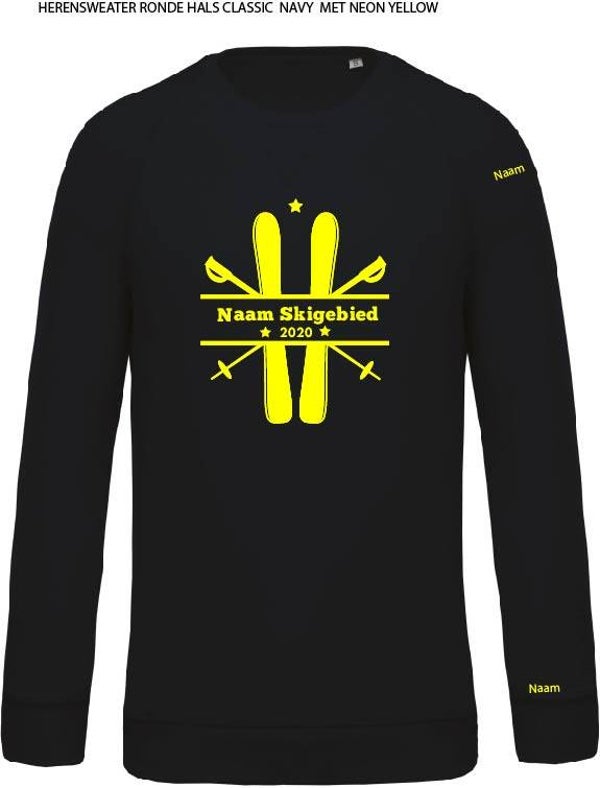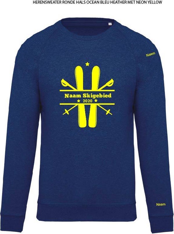 french heather navy met neon yellow / Small / opdruk naam onder (boven mouwboord)