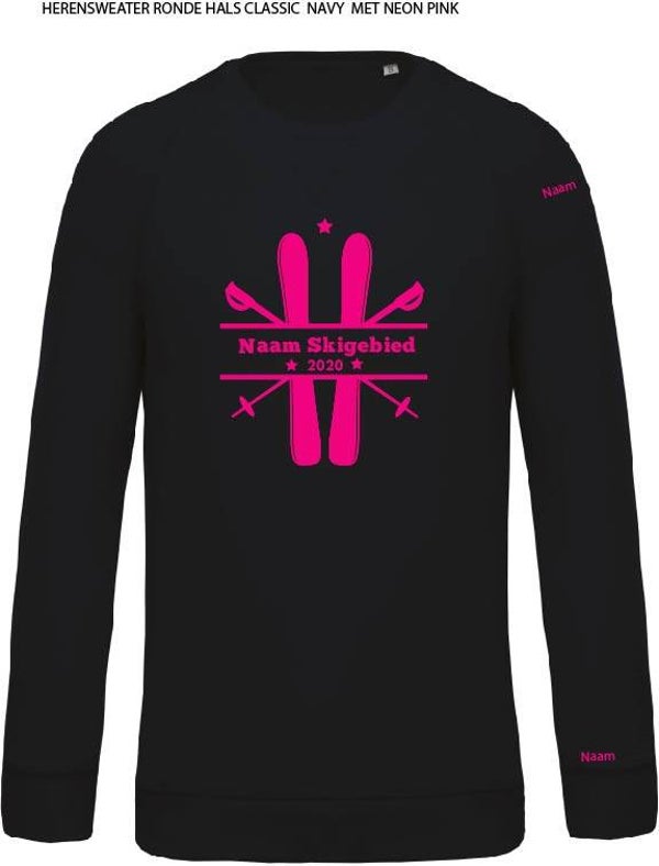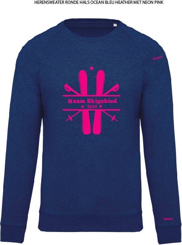 french heather navy met neon pink / Medium / opdruk naam onder (boven mouwboord)