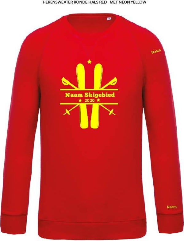 Red met neon yellow / Medium / opdruk naam onder (boven mouwboord)