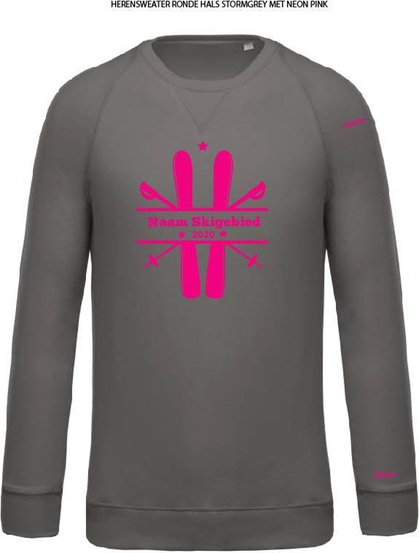 Stormgreu met neon pink / Medium / opdruk naam onder (boven mouwboord)