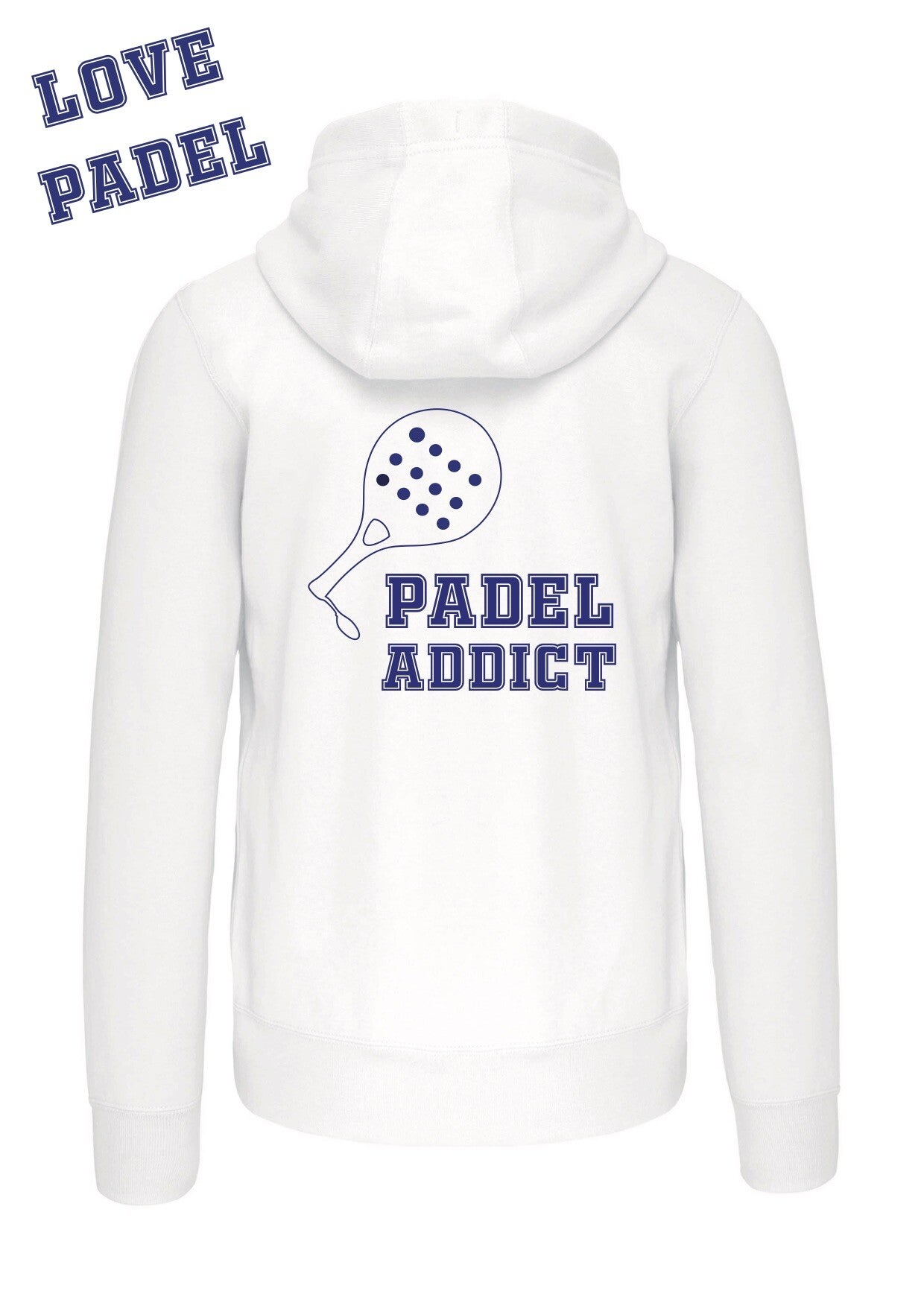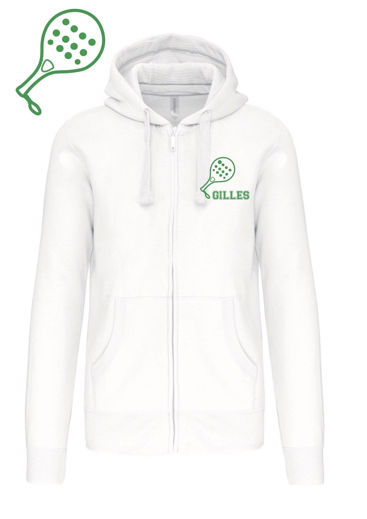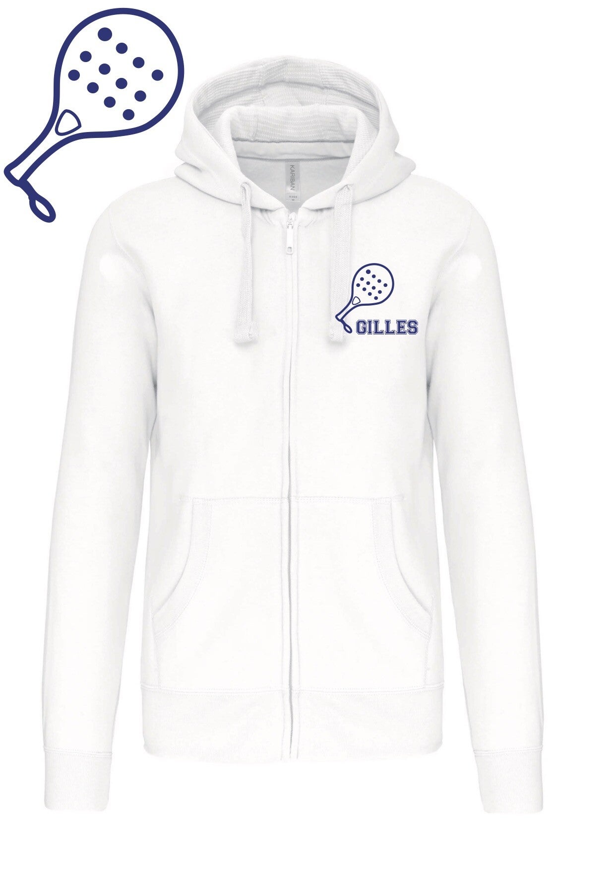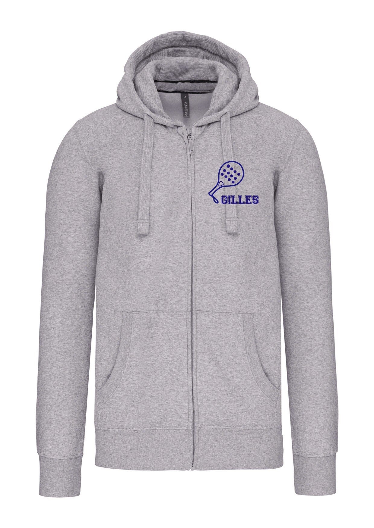 Coole sweater met eigen naam en Padel logo. Beschikbaar in Royal bleu of oxford grey. Warme sweater 300 gr ,80% gekamd katoen / 20% polyester . Geborsteld fleece aan de binnenkant. Nektape in contrastkleur. (Navy voor de kleur Oxford Grey en Oxford Grey royal bleu). Gevoerde capuchon in honinggraatstructuur met aanrijgkoordje. 'Kangaroe' zakken. Afwerking in rib aan de zakken, mouwuiteinden en onderaan. Ritssluiting.