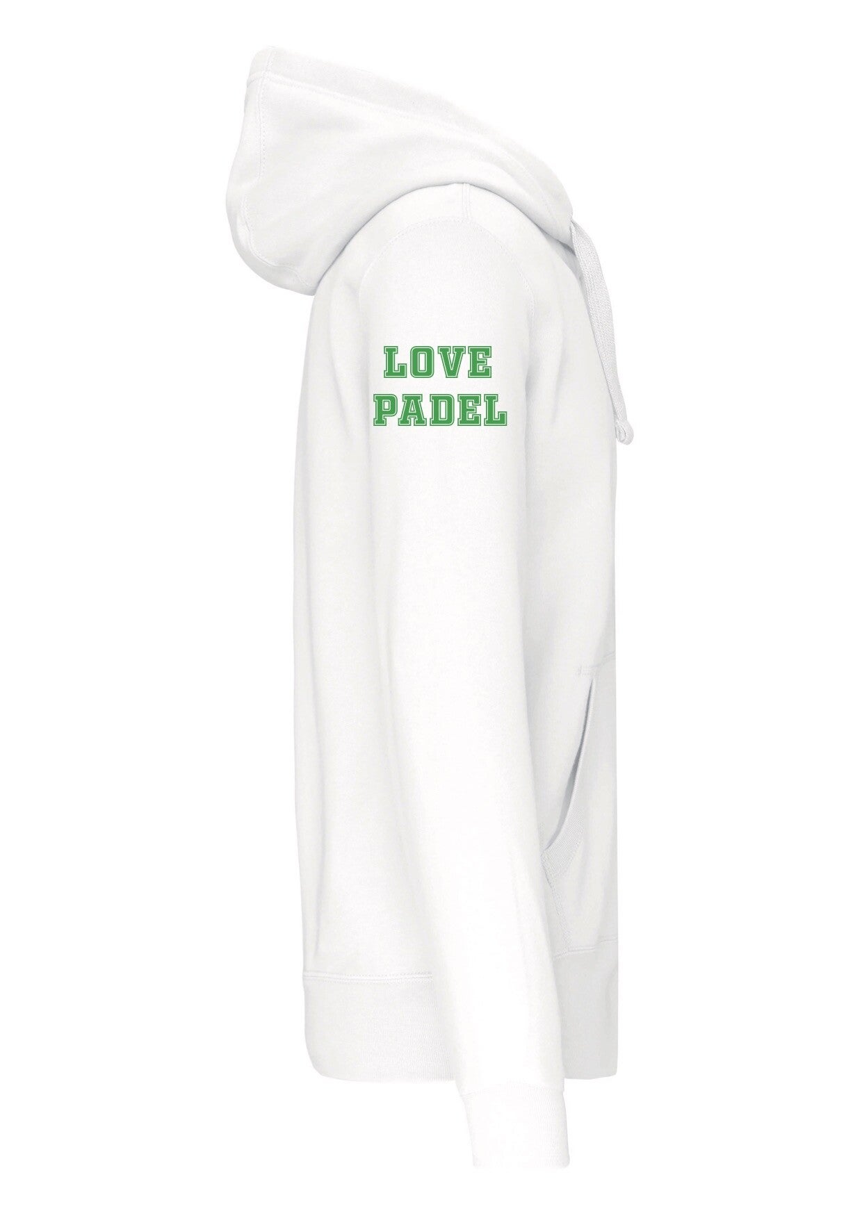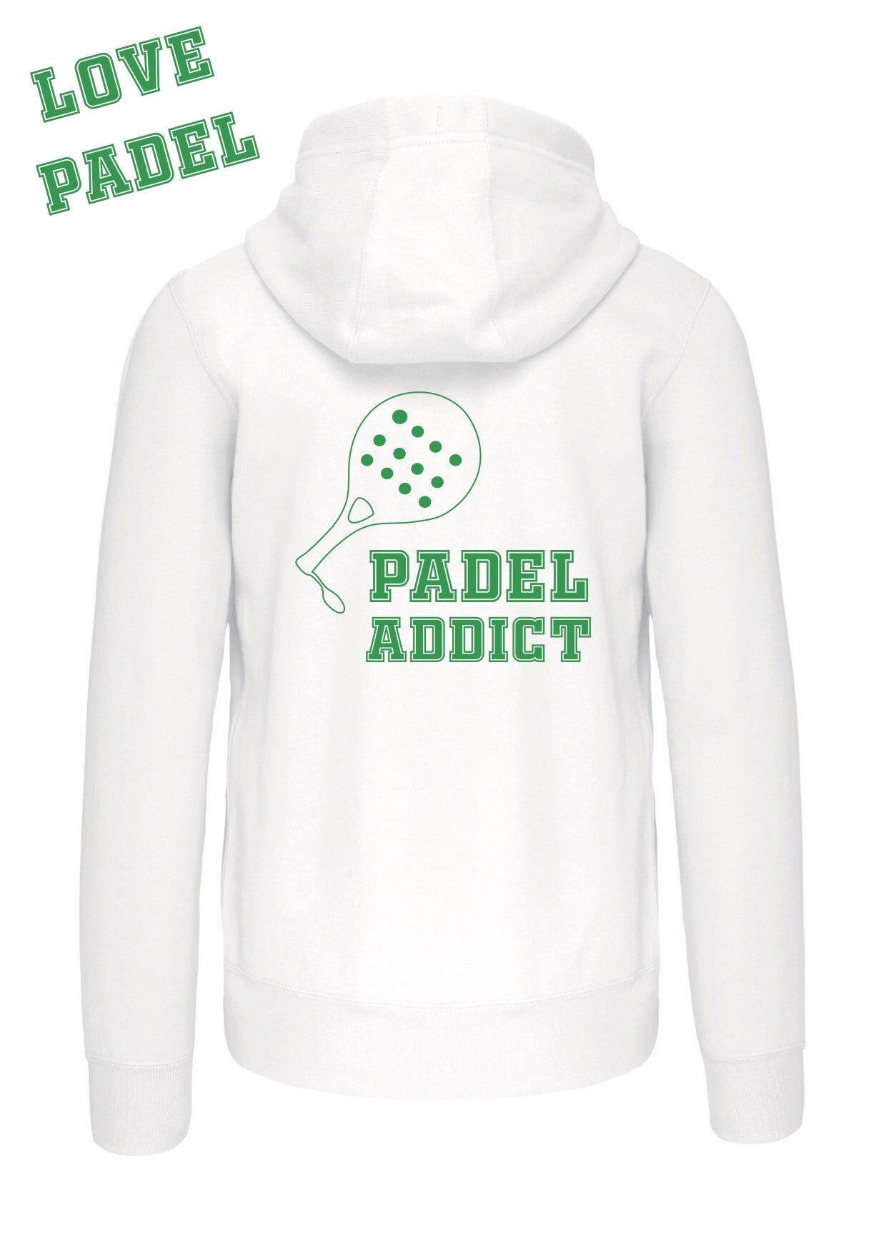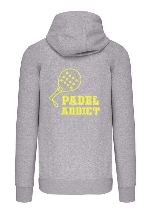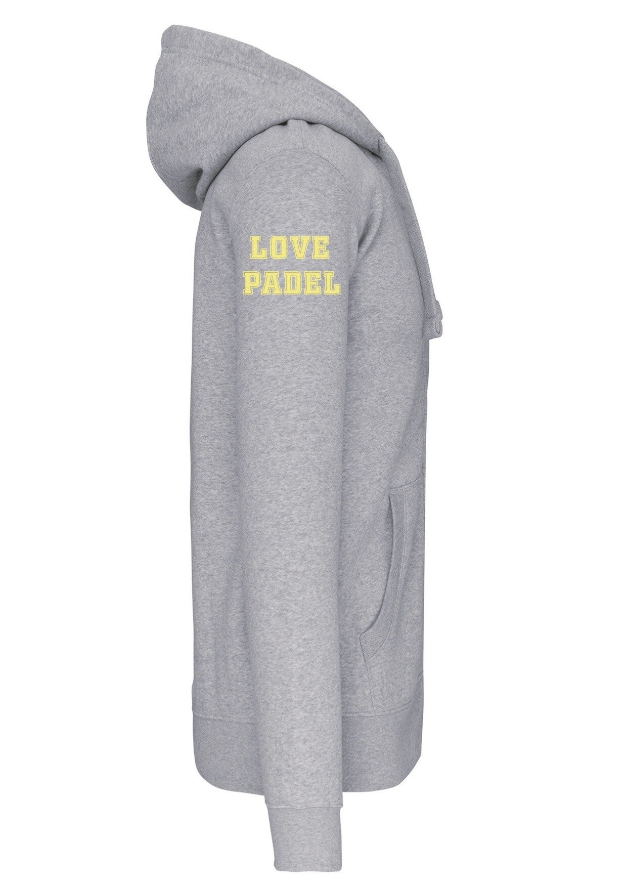 Coole sweater met eigen naam en Padel logo. Beschikbaar in Royal bleu of oxford grey. Warme sweater 300 gr ,80% gekamd katoen / 20% polyester . Geborsteld fleece aan de binnenkant. Nektape in contrastkleur. (Navy voor de kleur Oxford Grey en Oxford Grey royal bleu). Gevoerde capuchon in honinggraatstructuur met aanrijgkoordje. 'Kangaroe' zakken. Afwerking in rib aan de zakken, mouwuiteinden en onderaan. Ritssluiting.